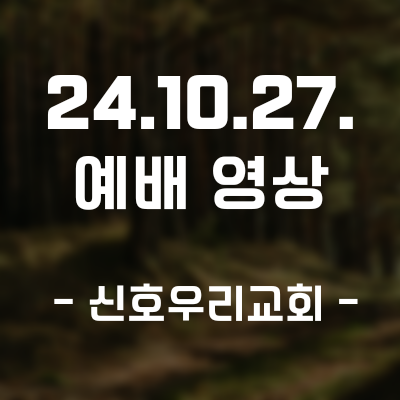 24년 예배 영상 241027 알 수 없는 사용자 2024. 10. 27. 12:30 공유하기 게시글 관리 신호우리교회 '24년 예배 영상' 카테고리의 다른 글 241103 (0) 2024.11.03 241013 (0) 2024.10.13 241006 (0) 2024.10.10 240929 (0) 2024.09.29 240922 (0) 2024.09.26 '24년 예배 영상' Related Articles 241103 241013 241006 240929
